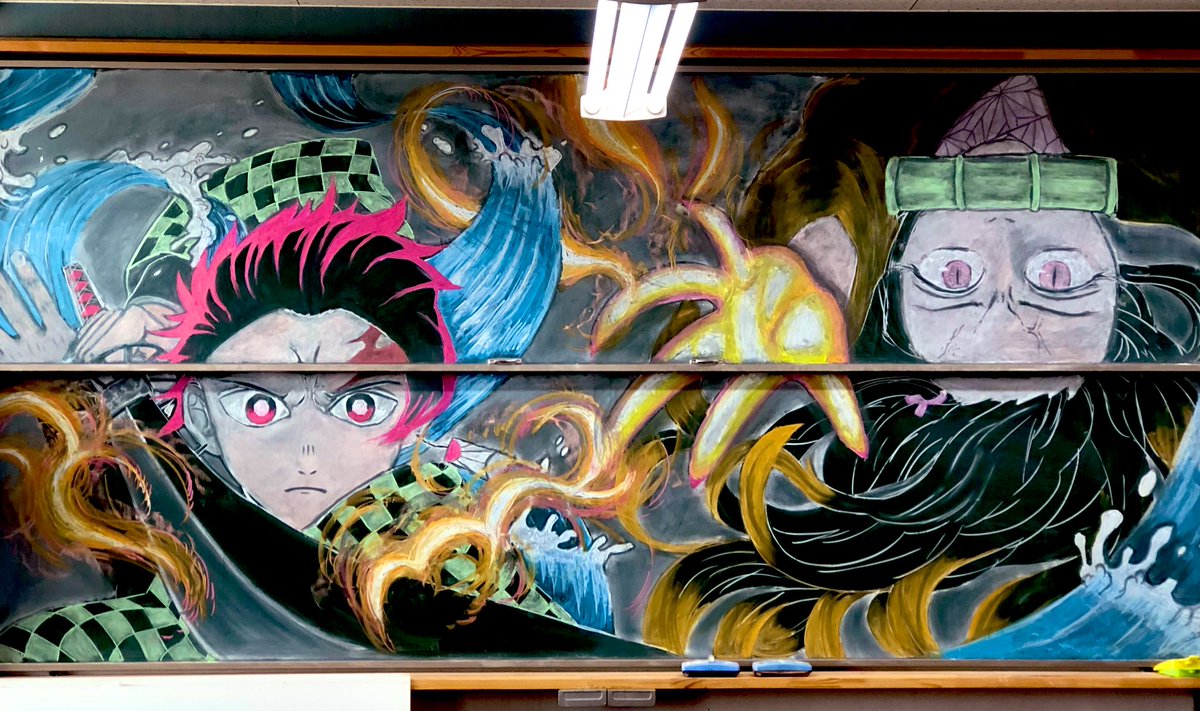 嘘でしょ チョークとは思えない 鬼滅の刃 超絶アート 卒業生たちの思い出に 描いたのは高校の先生 まいどなニュース